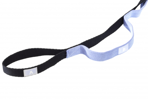 Mit seiner Breite von 3,8 cm liegt der Gurt angenehm in der Hand und schneidet unter Zug weniger ein als sehr schmale Varianten. Das ist besonders hilfreich, wenn der Gurt über den Vorfuß geführt wird oder wenn längere Haltezeiten geplant sind. Die vorgebundenen Schlaufen sparen zudem Zeit: Statt erst eine Schnalle zu fädeln oder einen Knoten zu setzen, ist das Setup sofort einsatzbereit – ein Pluspunkt in Kursen, bei wechselnden Klienten oder in Zirkelformaten.