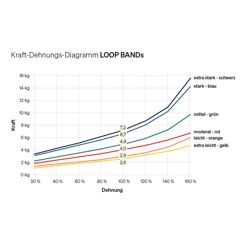- Widerstand (Orientierungswert): ca. 2,6 kg bei 100 % Dehnung